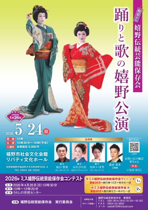 「2026年 嬉野伝統芸能保存会ミスコンテスト」の開催が決定いたしました!